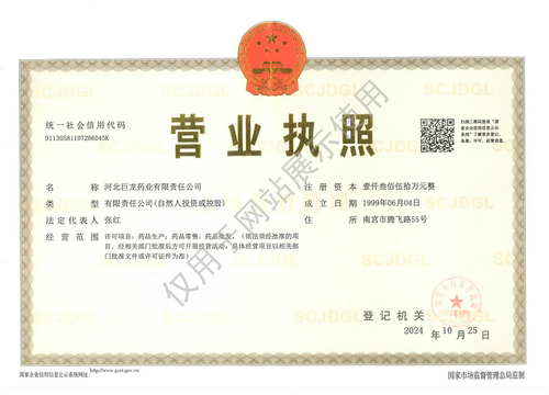 版權(quán)所有:河北巨龍藥業(yè)有限責(zé)任公司 冀ICP備19023826號(hào)-1   1733465040158507.png  冀公網(wǎng)安備13058102000452號(hào) 證書編號(hào) :(冀)-非經(jīng)營性-XXXX-XXXX